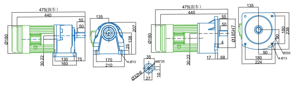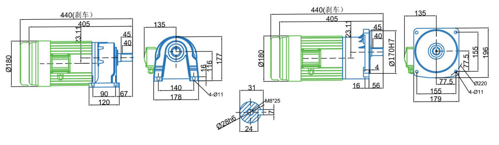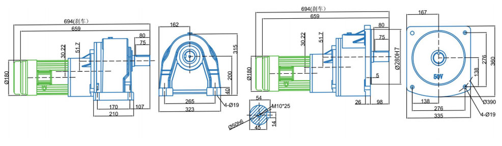 Диаметр выходного вала: φ28 мм φ32 мм φ40 мм φ50 мм